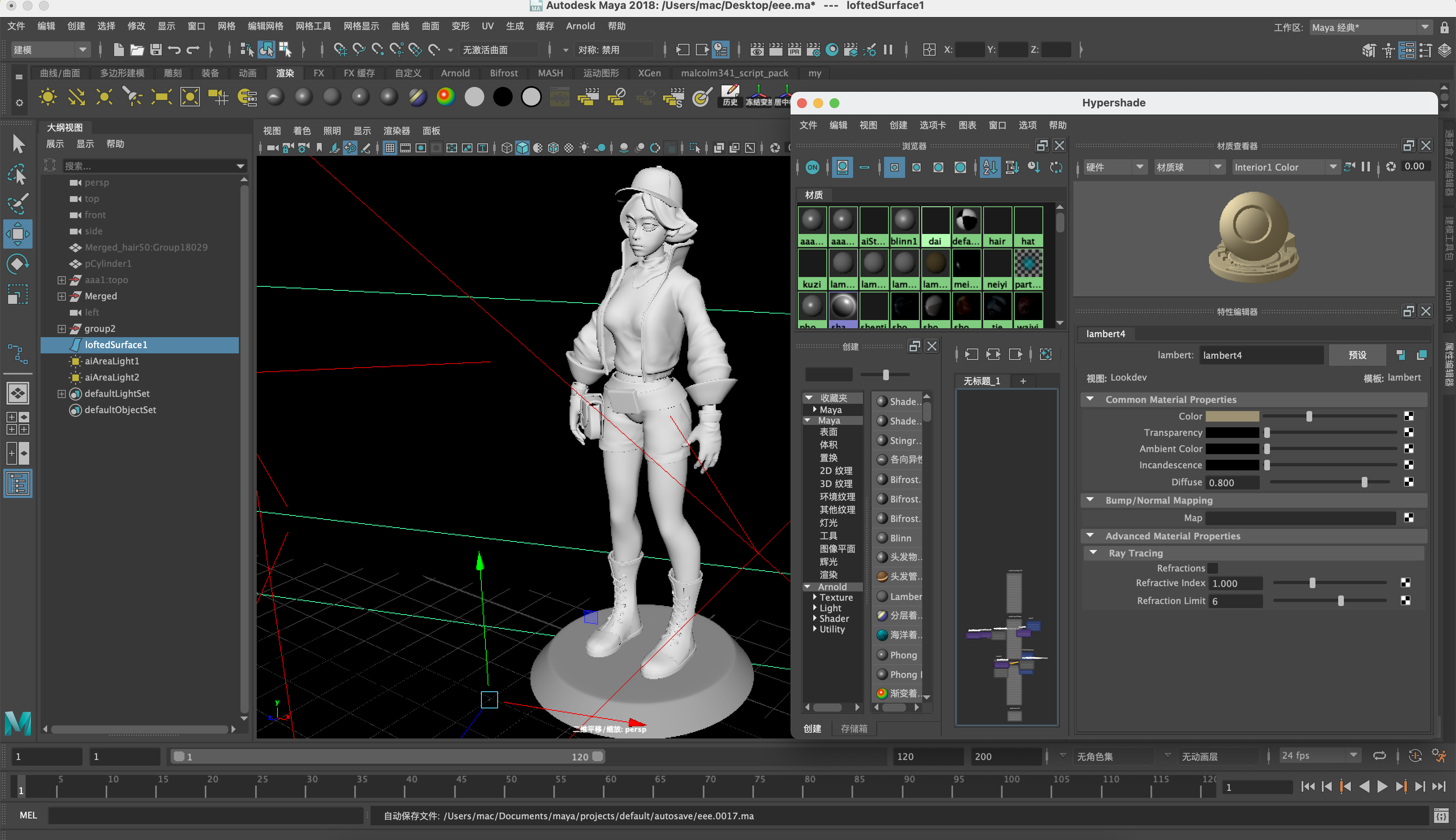 角色白模渲染